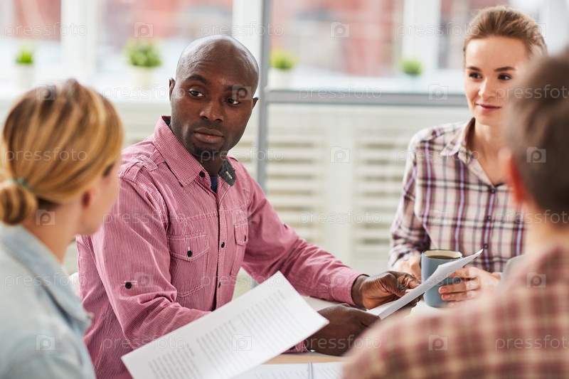 Мужчина обсуждает работу с коллегами