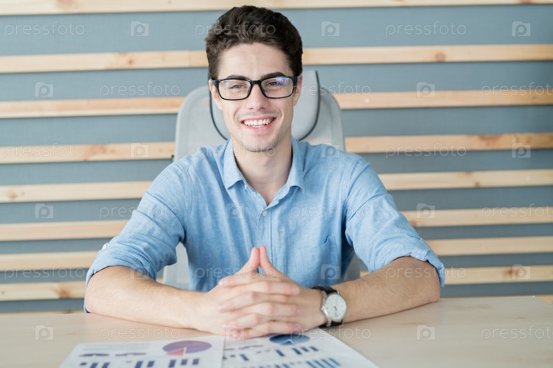 Молодой бизнесмен сидит в офисе