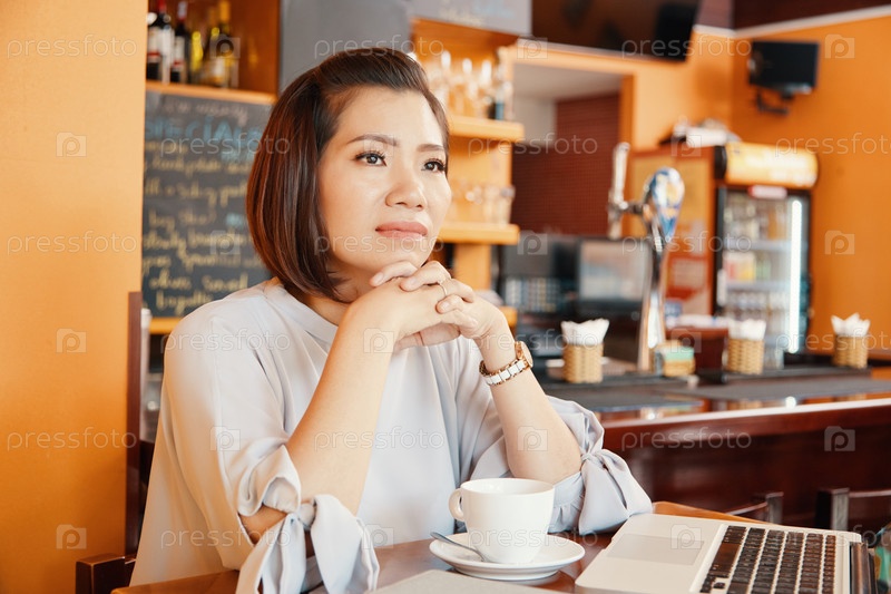 Красивая женщина в кофейне
