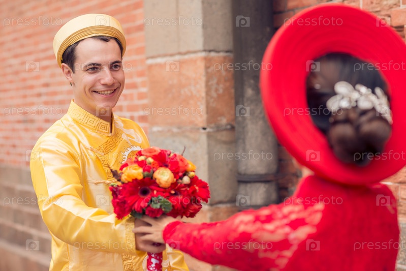 Свадебная пара в традиционных вьетнамских костюмах