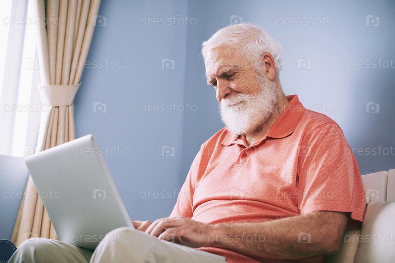 Пожилой мужчина проверяет электронную почту