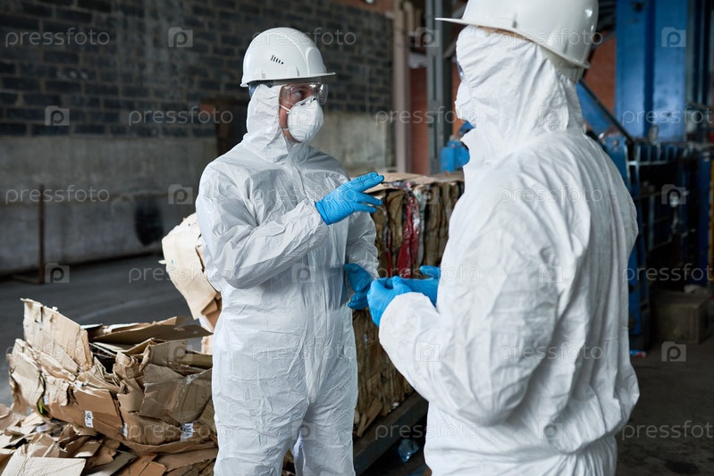 Работники на складе завода по переработке