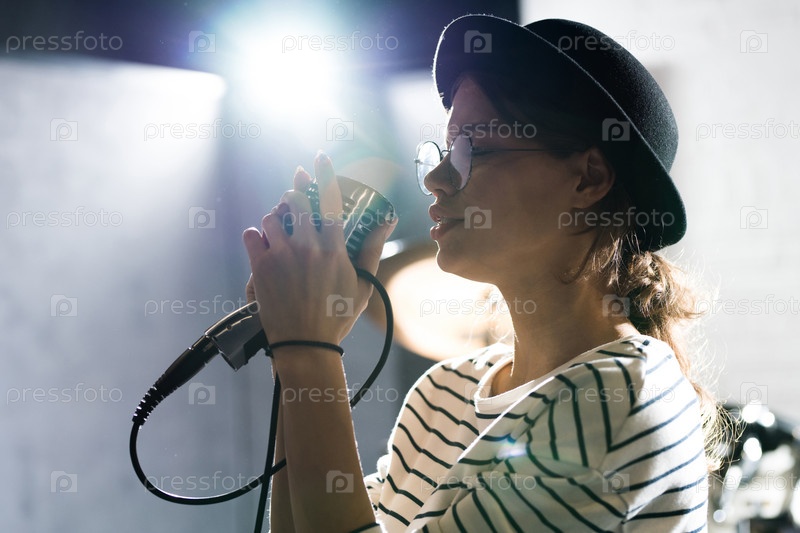 Молодая женщина наслаждается пением