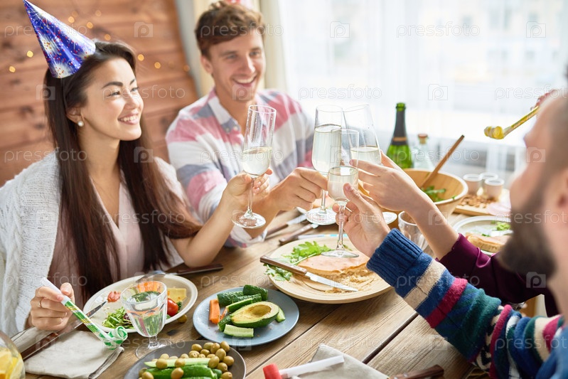 Счастливая азиатская женщина празднует день рождения с друзьями