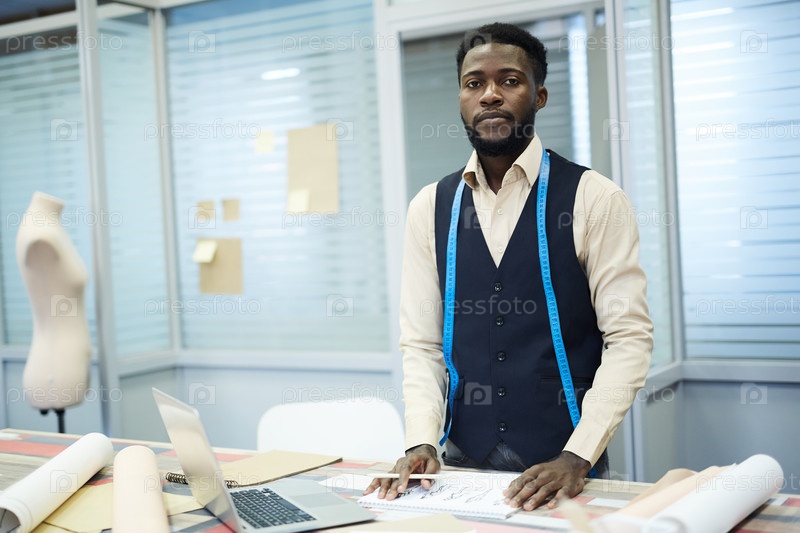 Серьезный портной, работающий в собственной студии
