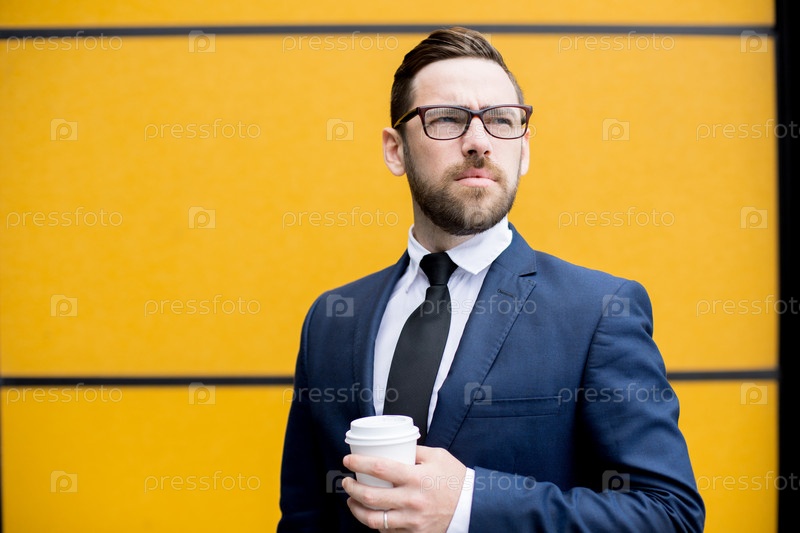 Красивый мужчина держит чашку горячего напитка