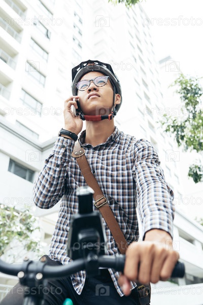 Велосипедист разговаривает по телефону