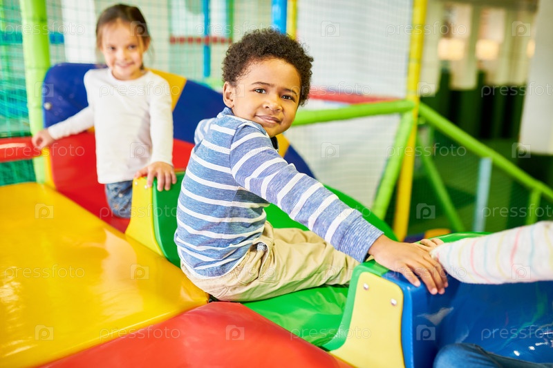 Маленький мальчик наслаждается слайдами