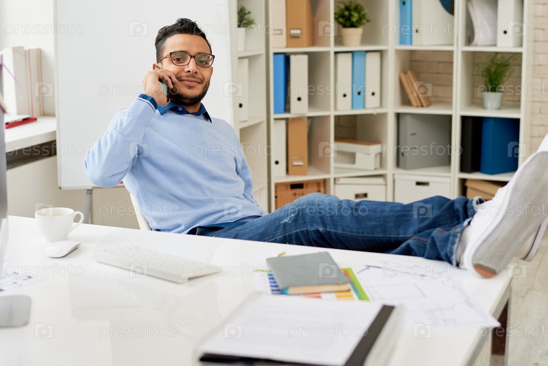 Ближневосточный молодой человек отдыхает на рабочем месте