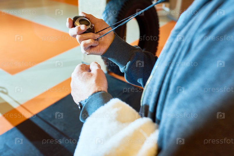 Тренер по выращиванию урожая устанавливает время в спортзале