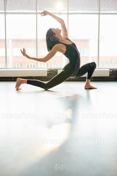 Танцующая в солнечной студии женщина