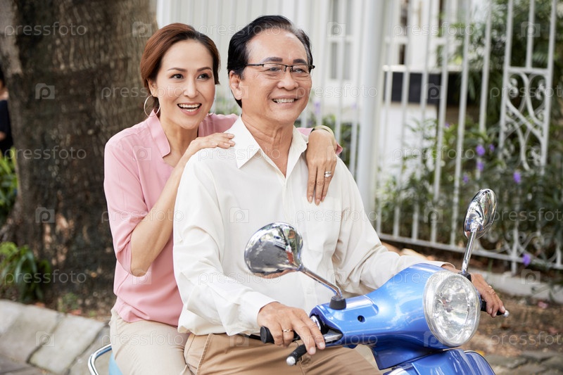 Пожилая пара на скутере