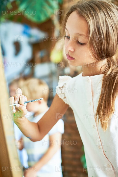 Талантливая девочка-подросток в классе искусства