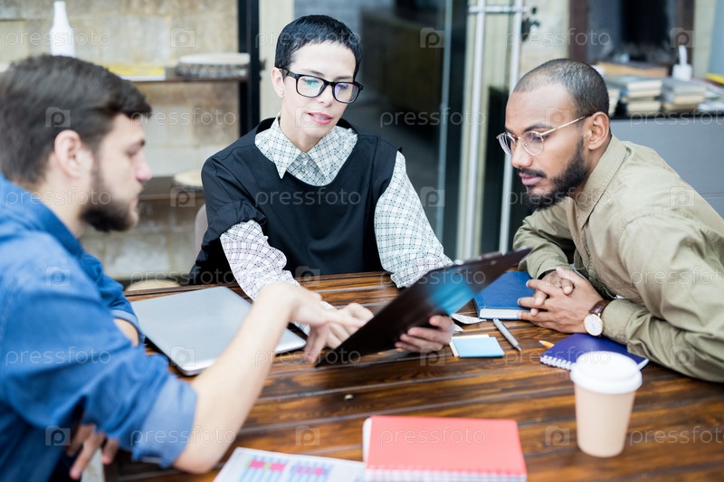 Современная леди объясняет задания коллегам