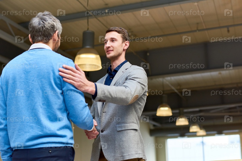Бизнес-партнеры пожали друг другу руки в вестибюле