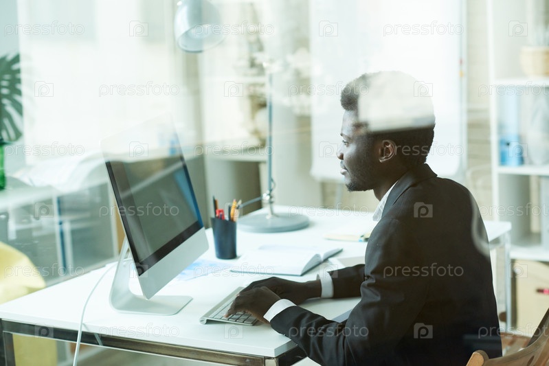 Успешный африканский бизнесмен, использующий ПК