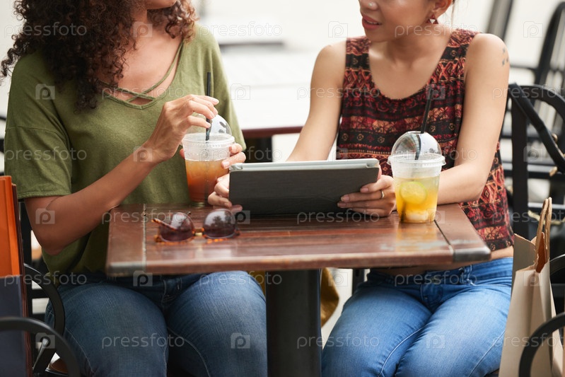 Женские друзья в открытом кафе