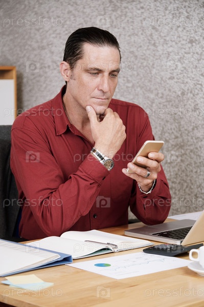 Предприниматель читает текстовое сообщение