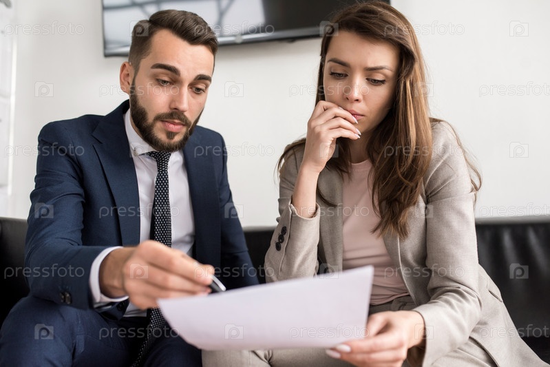 Бизнес-люди, читающие современные документы