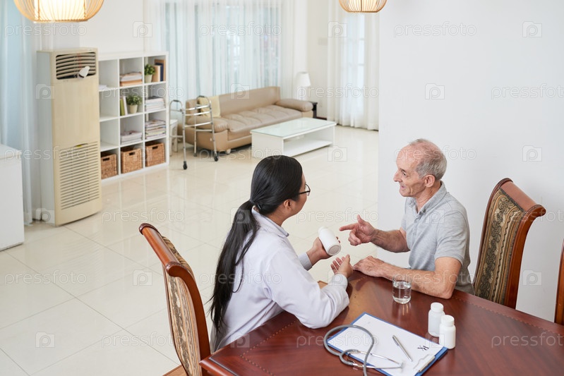 Врач разговаривает со старшим пациентом дома