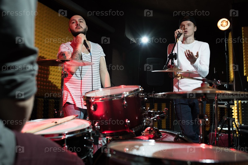 Музыкальная группа репетирует в студии