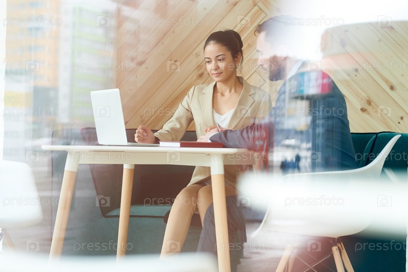 Молодая предпринимательница, работающая за стеклянной стеной