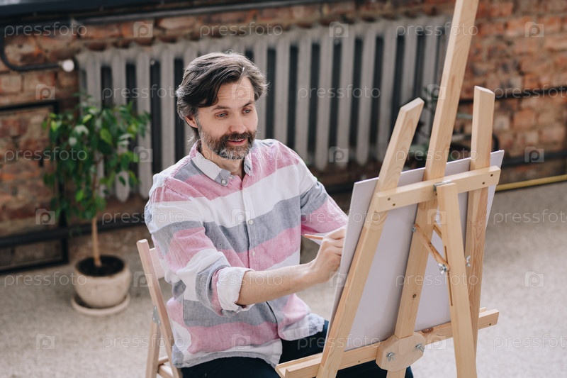 Зрелый художник рисует в художественной студии