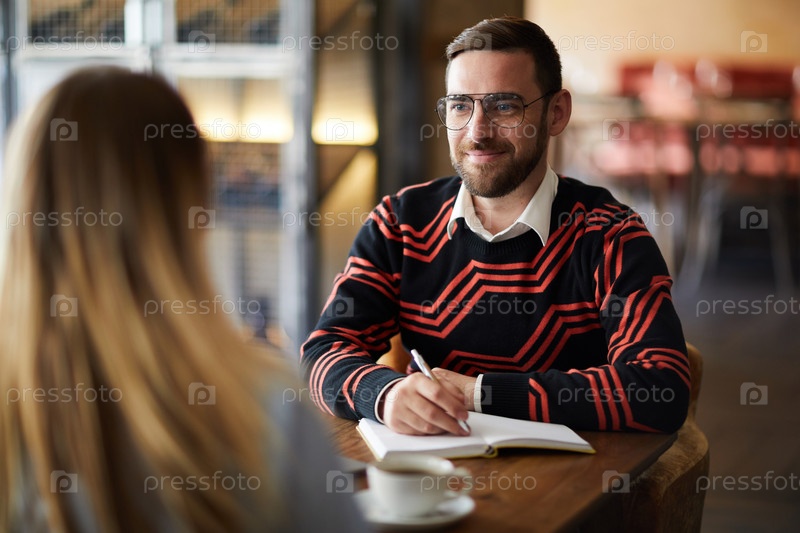 Мужчина разговаривает с коллегой