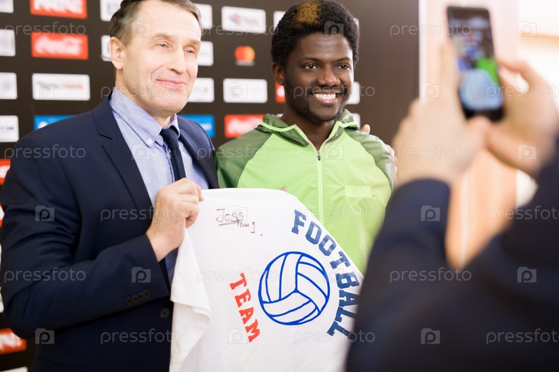 Знаменитости футбола с автографом на футболке
