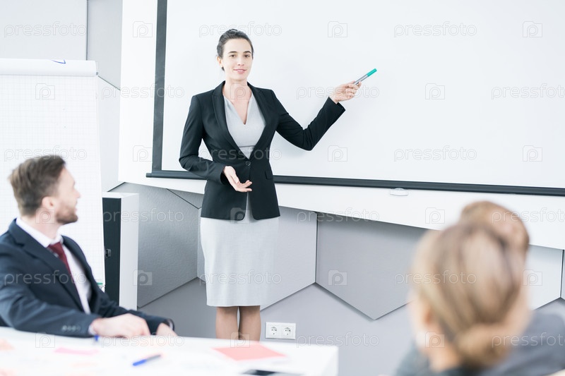 Деловая женщина, выступающая с речью в офисе