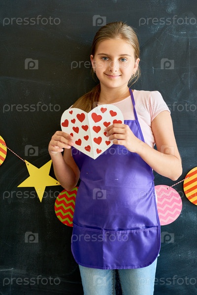 Девушка-подросток, держащая бумажное сердце с счастливым сердцем