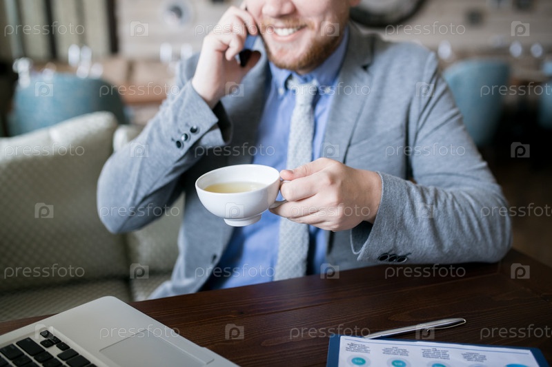 Мужчина пьет чай во время работы
