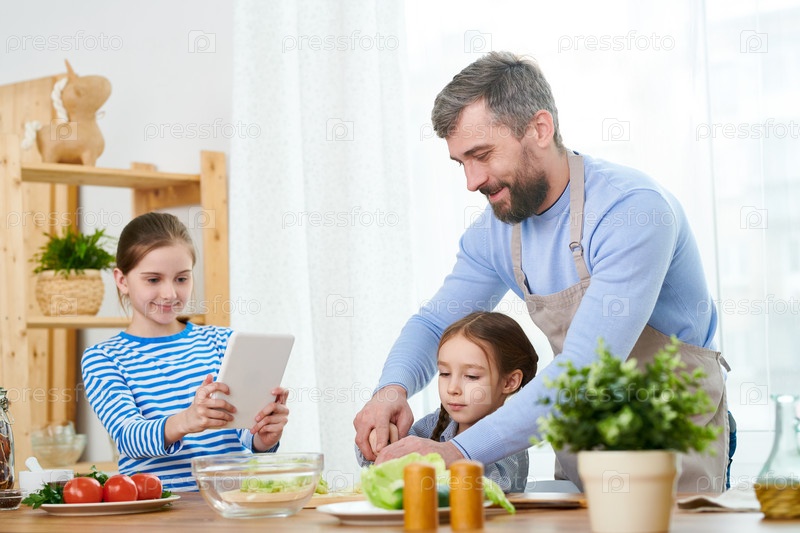 Помогать маленьким дочерям готовить салат