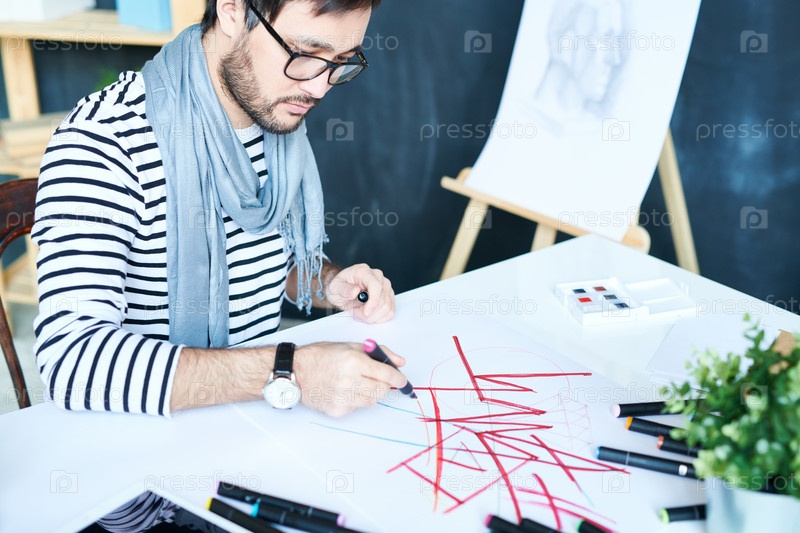 Творческий человек рисует с помощью маркеров
