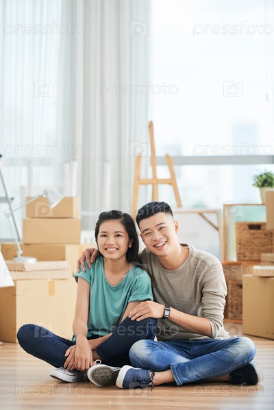 Молодая пара отдыхает на полу