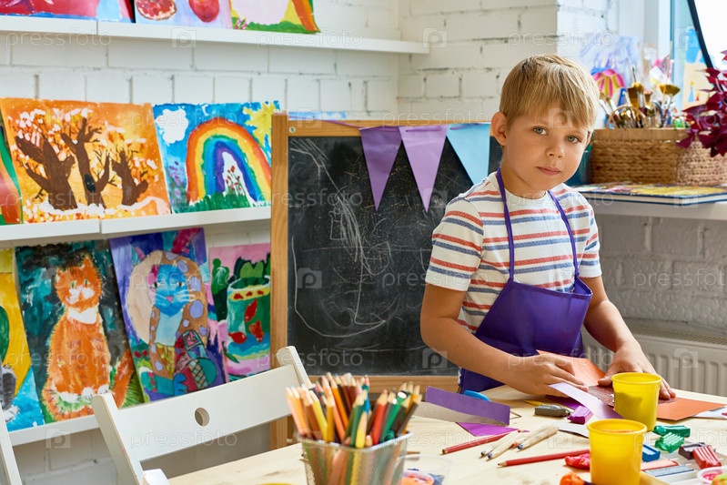 Маленький мальчик позирует в художественной студии