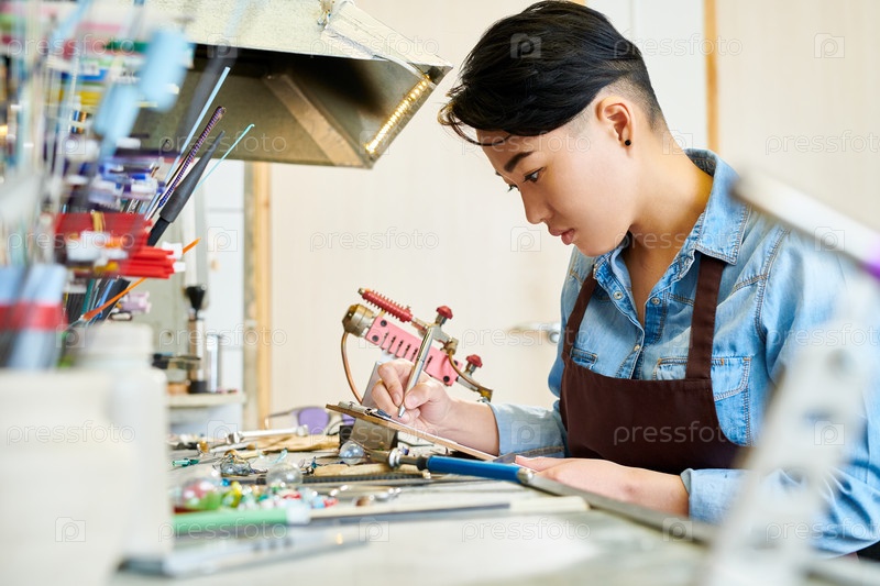 Женщина в стекольной студии Азиатская