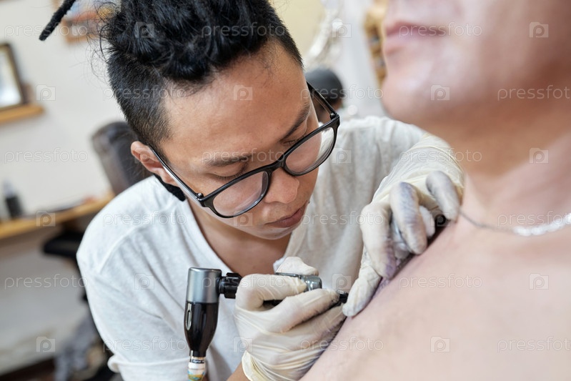 Сосредоточен на татуировке