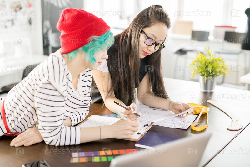 Творческие молодые женщины, работающие в мастерской ателье
