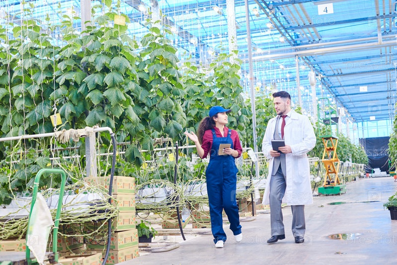 Фермерский заводчик разговаривает с женщиной-работницей
