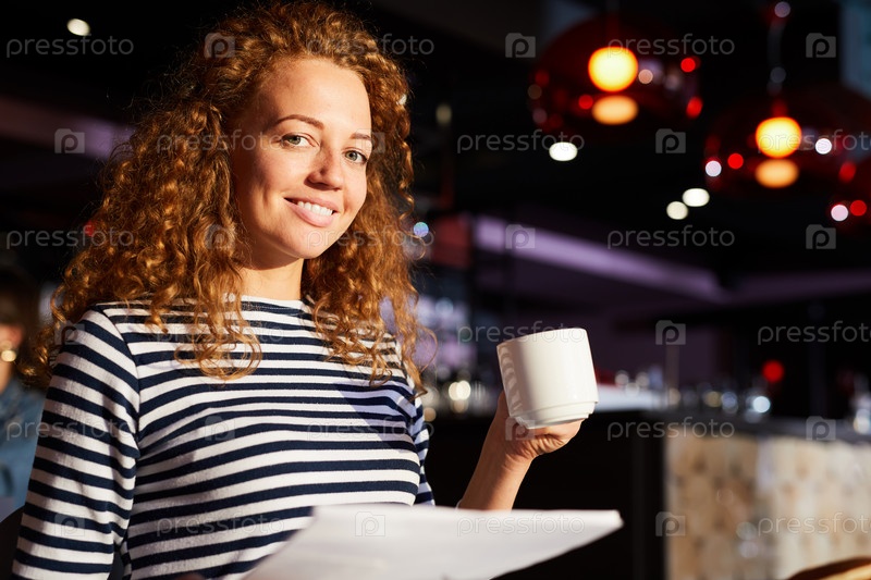 Привлекательная женщина пьет кофе