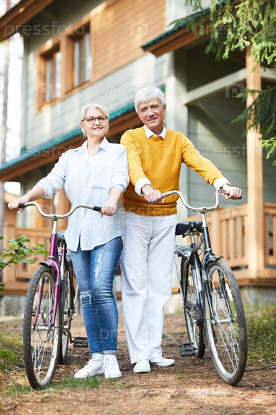 Улыбающиеся пожилые люди ведут активный образ жизни