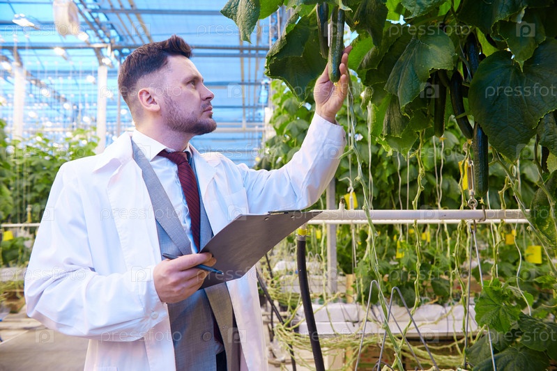 Ученый, изучающий овощи