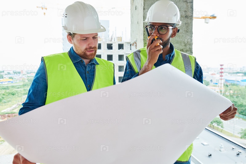 Строительный мастер передает сообщение по радио