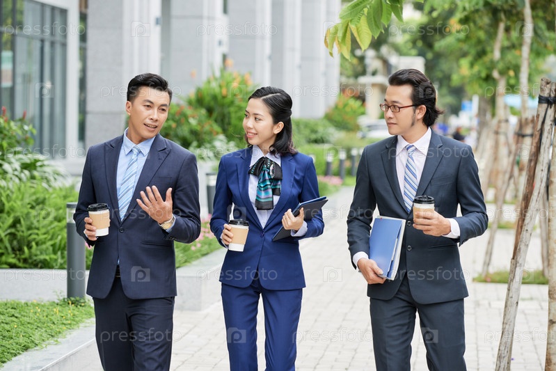 Современные бизнесмены с кофе на улице