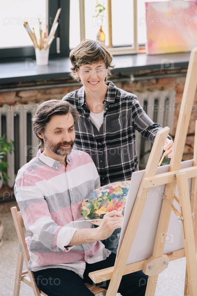 Зрелый мужчина рисует в классе искусства