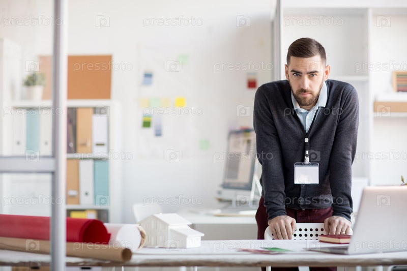 Серьезный офисный работник смотрит на камеру