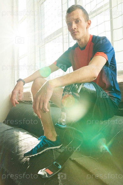 Спортсмен-ампутированный отдыхает на солнце