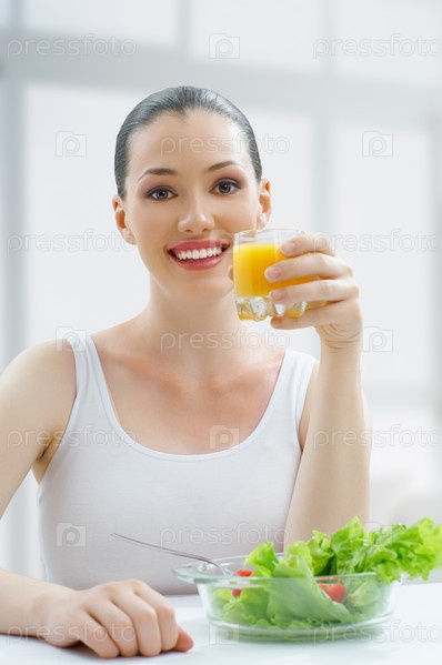 Красивая девушка ест здоровую пищу
