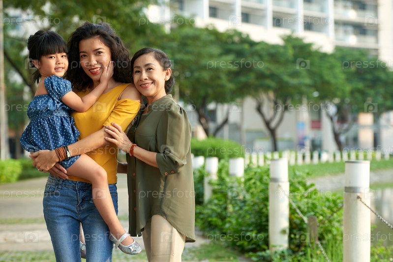 Любящая семья из трех человек позирует для фотографии